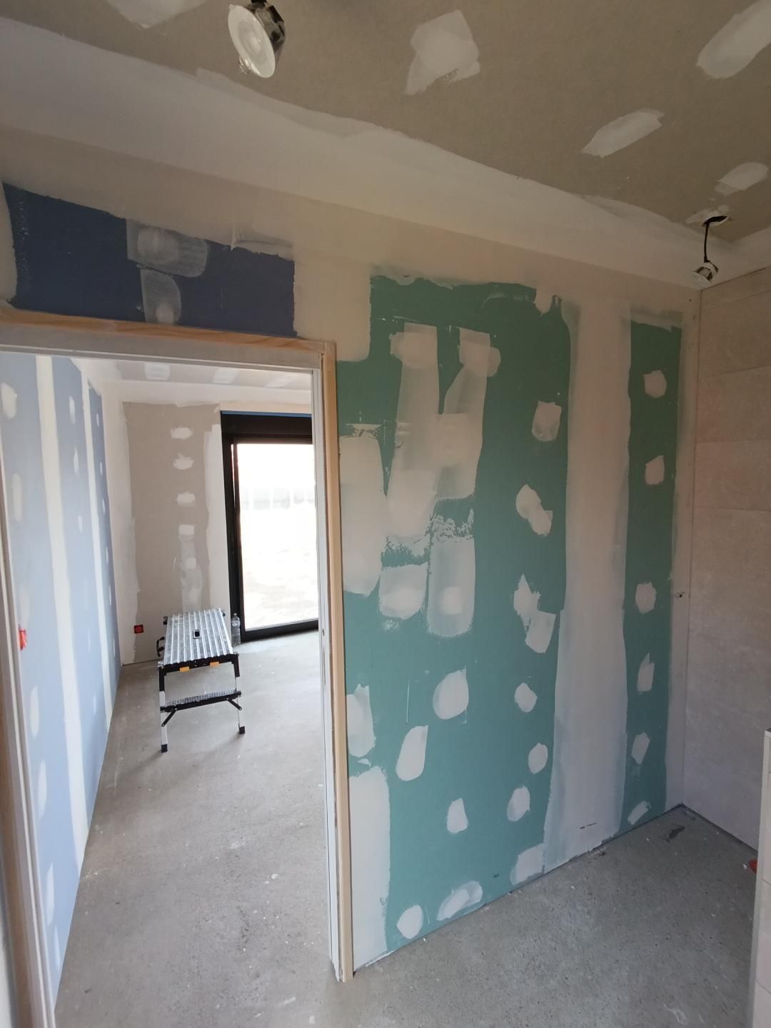 Pour des murs parfaitement prêts à peindre, nous réalisons un ratissage et un enduisage minutieux. La pose de bandes à joint est une étape importante pour obtenir une surface lisse et uniforme.